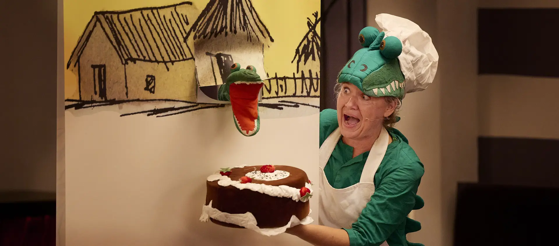 Een gevarieerd optreden waarbij de kinderen luidkeels mee kunnen zingen en dansen! En ook al is het een beetje spannend, de krokodil bijt misschien in je bil… er worden geen kindjes opgegeten!