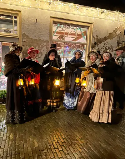 Opnieuw wandel je vanaf het station langs de Drom naar ’t Suud, waar sfeervol verklede personages en Dickenskoortjes de kerstgedachte tot leven brengen. Bewoners ontvangen familie, er hangt warmte e...