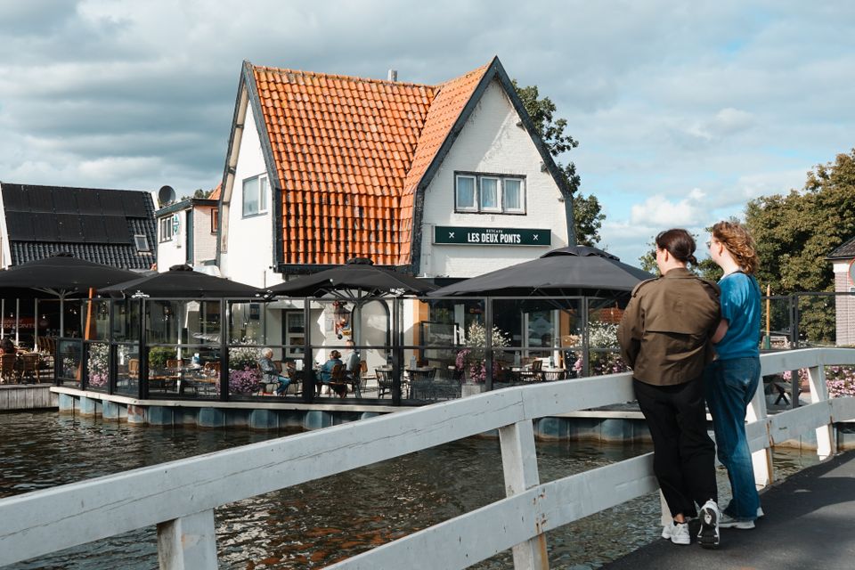 Eetcafé Les Deux Ponts ligt precies goed. Aan de Westfriese Omringdijk in Oudendijk, met uitzicht over de Beemsterringvaart en de polder. Geen gekke plek dus om even neer te strijken. Zeker niet als je net van de boot, fiets of wandelroute komt. Dit is namelijk zo’n plek waar van alles samenkomt: varen, wandelen, fietsen en daarna gewoon aanschuiven. Bij mooi weer pak je een plekje op het terras. Zon erbij, uitzicht voor je neus. Binnen is het net zo goed toeven, met een knusse sfeer en gewoon nog een echte bruine kroeg. Op de kaart staan goede broodjes, taart bij de koffie en uitgebreide lunches. Blijf je wat langer hangen, dan kun je ook aanschuiven voor het diner. Met lekkere gerechten en een goed glas wijn erbij. En ook wel fijn: elke maand staat er een nieuw maandmenu op de kaart voor een fijne prijs. Op donderdag maken ze het helemaal makkelijk, dan serveren ze onbeperkt tapas.