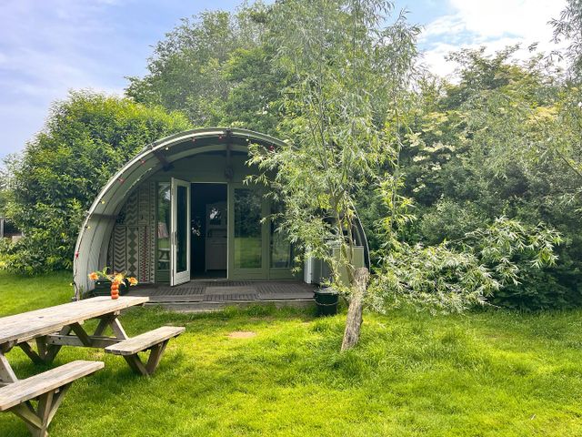 Zeiden we natuur? Dan zit je hier goed. Met een blotevoetenpad, veel groen en een vissteiger wil je niet meer naar binnen. Logeren kan ook in een pipowagen.