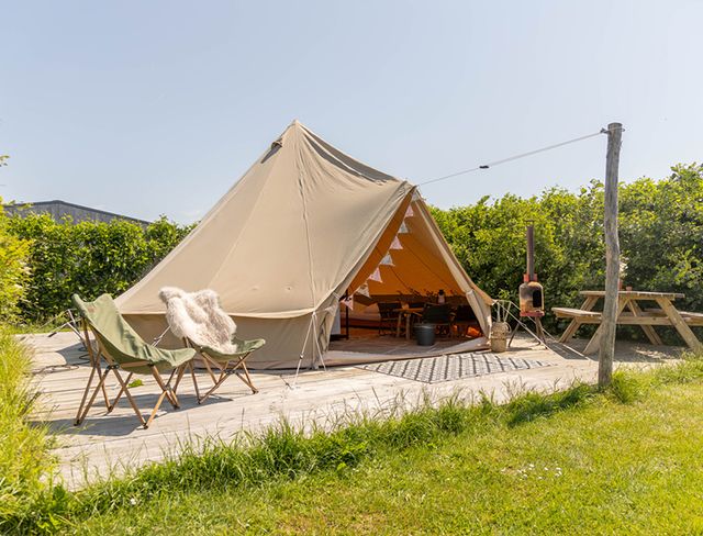 Dauw op het gras, de zon die langzaam opkomt, fluitende vogels, ritselende bladeren en het IJsselmeer op loopafstand. ’s Avonds bak je een pizza in een van de ovens of rooster je marshmallows bij het kampvuur. De kinderen? Die struinen heerlijk rond met hun nieuwe vrienden.