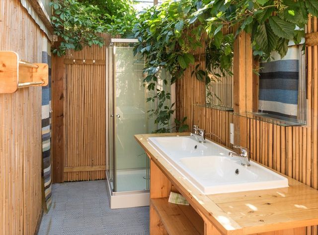 Slapen tussen de bloemen in Lutjebroek. Op deze kwekerij staan vijf safaritenten voor vier personen, met alles wat je nodig hebt: een badkamer, keuken en vaste bedden. En door de opzet van het terrein zit je hier ook goed met een grotere groep.